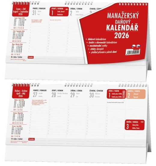 Kalendář stolní, Manažerský daňový 32 x 14 cm 2026
