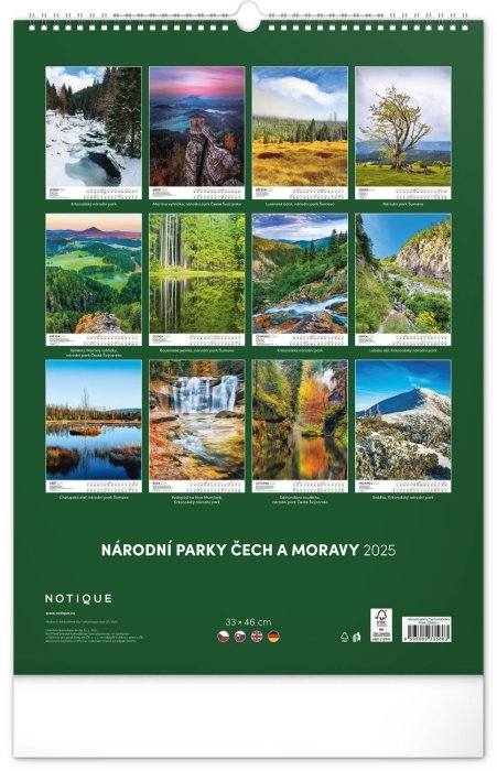 Kalendář nástěnný, Národní parky Čech a Moravy 2026