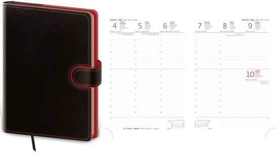 Diář Flip, týdenní, A5, koženka, černý/červený