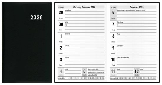 Diář Gustav, týdenní, kapesní, PVC, černý 2026