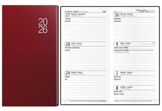 Diář Jakub, týdenní, kapesní, balacron, bordó 2026