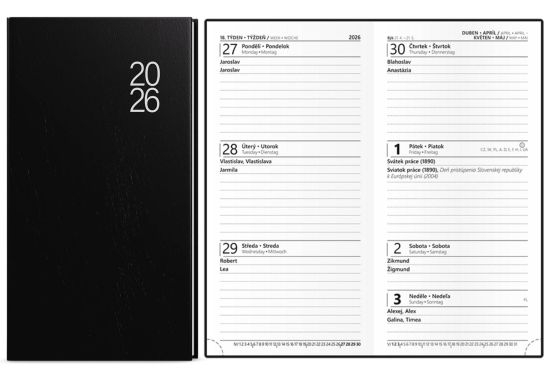 Diář Jakub, týdenní, kapesní, balacron, černý 2026