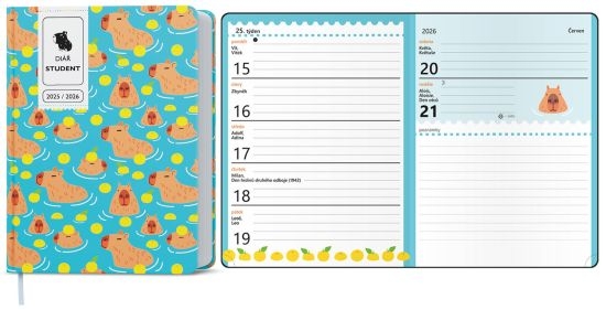 Diář Student V8, týdenní, kapesní, lamino, Kapybara 2025/26