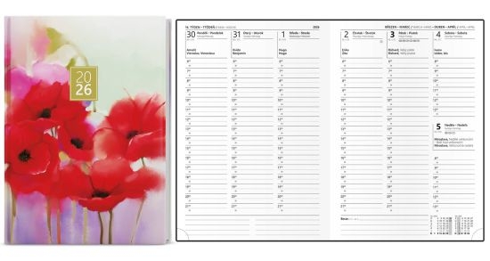 Diář Oskar, týdenní, A5, lamino, Máky 2026