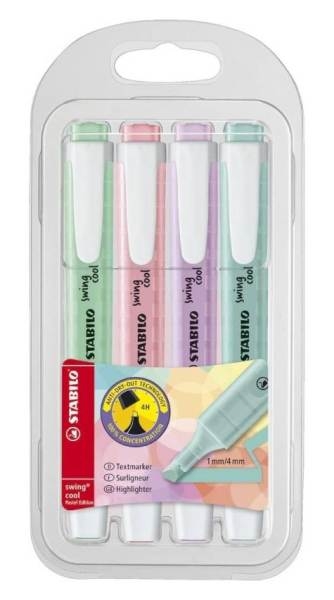 Zvýrazňovač Stabilo Swing Cool Pastel, 1-4 mm, sada 4 ks