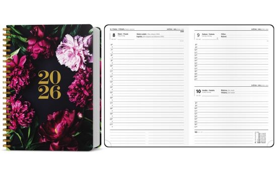 Diář David Twin wire, denní, A5, lamino, Pivoňky 2026