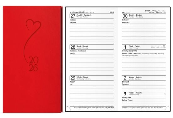 Diář Jakub, týdenní, kapesní, vivella s ražbou, Srdce 2026