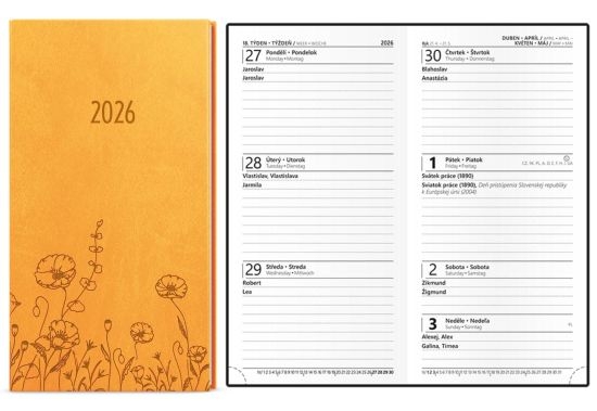 Diář Jakub, týdenní, kapesní, vivella s ražbou, Louka 2026