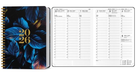 Diář Oskar Twin wire, týdenní, A5, lamino, Modré listy 2026