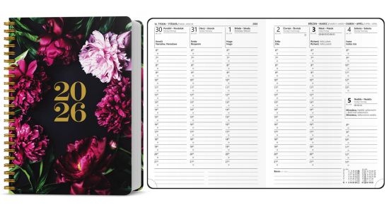 Diář Oskar Twin wire, týdenní, A5, lamino, Pivoňky 2026