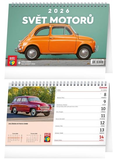 Kalendář stolní, Svět motorů-Auta, která jsme milovali 2026