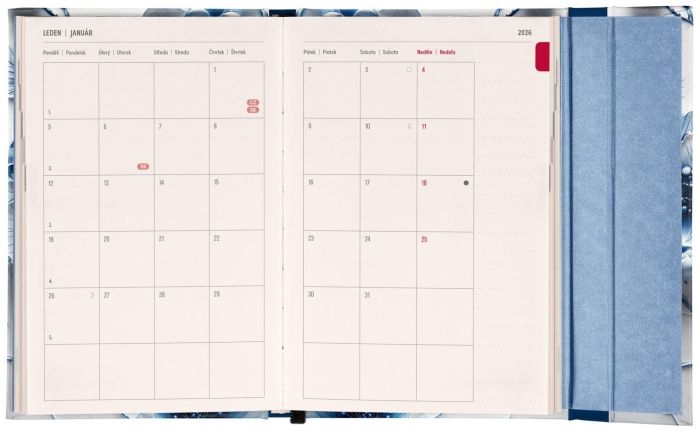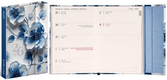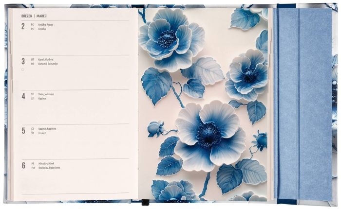 Diář magnetický, týdenní, A6, Porcelánový květ 2026