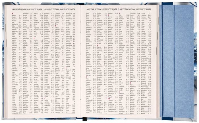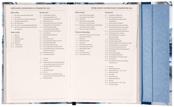 - kalendárium: šestijazyčné (CZ, SK, EN, DE, HU, RU) týdenní vertikální jmenné