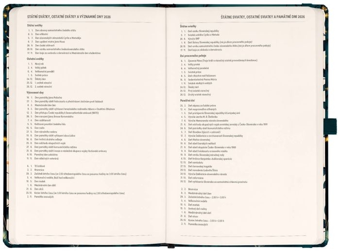 - kalendárium: vícejazyčné (EN, DE, ES, FR, IT, HU, PL, NL, BE) týdenní jmenné