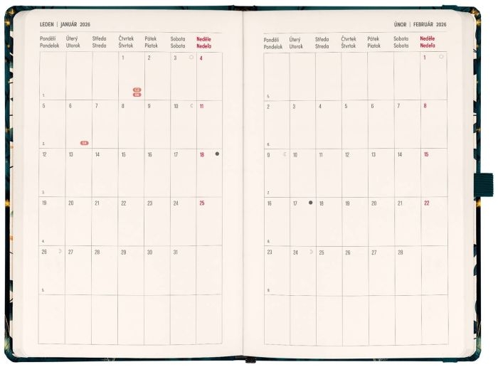 - řádkové rozvržení s prostorem pro poznámky na každý den