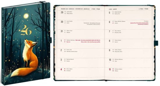 Diář obrázkový, týdenní, 13 x 21 cm, Liška 2026