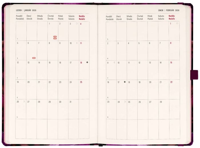 - řádkové rozvržení s prostorem pro poznámky na každý den