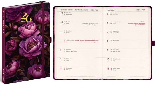 Diář obrázkový, týdenní, 13 x 21 cm, Fialové květy 2026