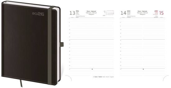 Diář Double Black, denní, A5 s poutkem, černý 2026