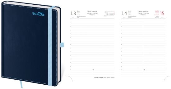 Diář Double Blue, denní A5 s poutkem, modrý 2026