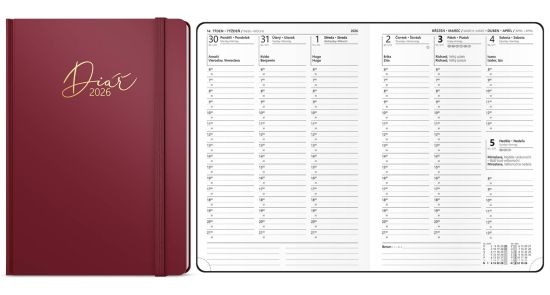 Diář Oskar Luxi, týdenní, A5, bordó 2026