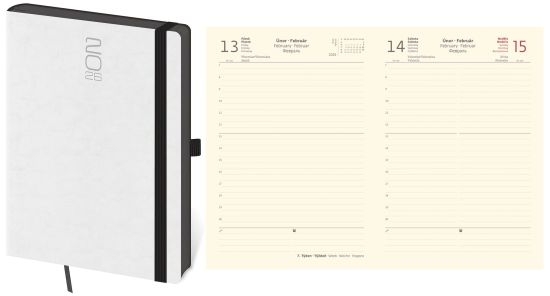 Diář Memory, denní, A5 s gumičkou, bílý 2026