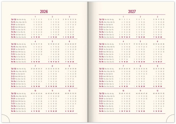 - kalendárium: šestijazyčné (CZ, SK, EN, DE, HU, RU) denní jmenné
