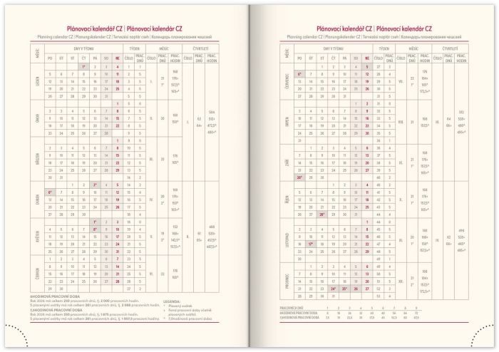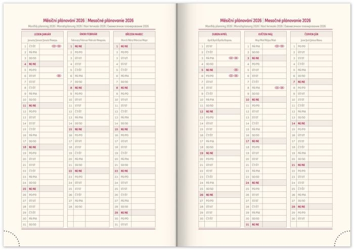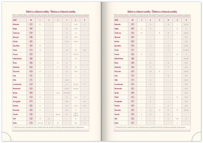 - kalendárium: šestijazyčné (CZ, SK, EN, DE, HU, RU) týdenní jmenné