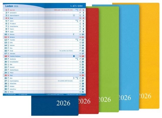 Diář Color M101 PVC, měsíční, kapesní 8 x 18 cm, mix 2026
